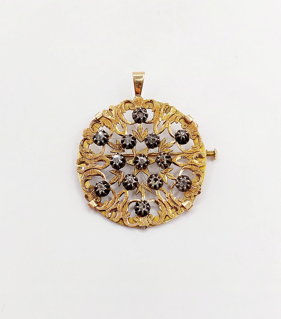 Une broche ancienne authentique porte généralement un poinçon français (tête d’aigle, charançon). Le style de la monture (Art Nouveau, victorien) et les pierres serties (diamants taille rose, perles fines) sont aussi des indicateurs clés.
