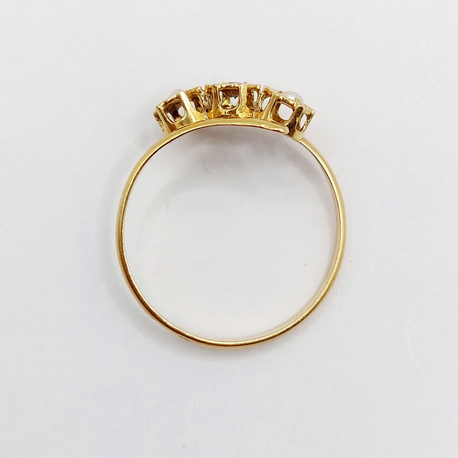 Bague antique or 18k ornée d'une pierre bleue et de perles dans des sertis fleuris (circa 1900)