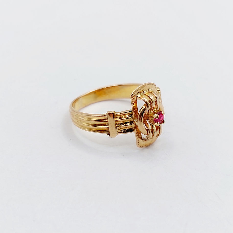 Bague chevalière victorienne or rose 18k ornée d'un rubis dans une monture finement travaillée (circa 1890)