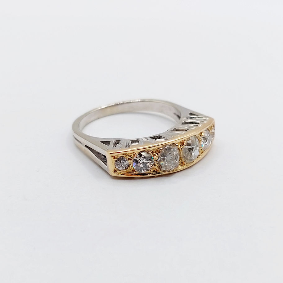 Bague jarretière or blanc et jaune 18k ornée de 1,05 carat de diamants taille ancienne