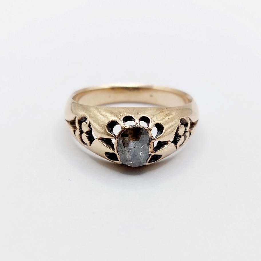 Bague jonc bombé antique or 14k diamant taille rose sur paillon (circa 1900)