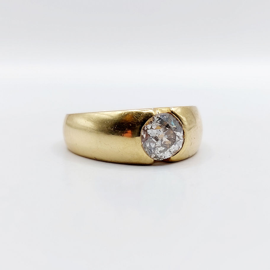 Bague jonc dôme or 18k ornée d'un diamant taille ancienne de 1,10 carat en serti masse (circa 1950)