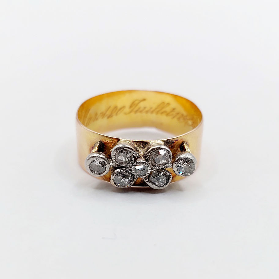 Bague jonc victorienne or rose 18k diamants taille ancienne (circa 1897)