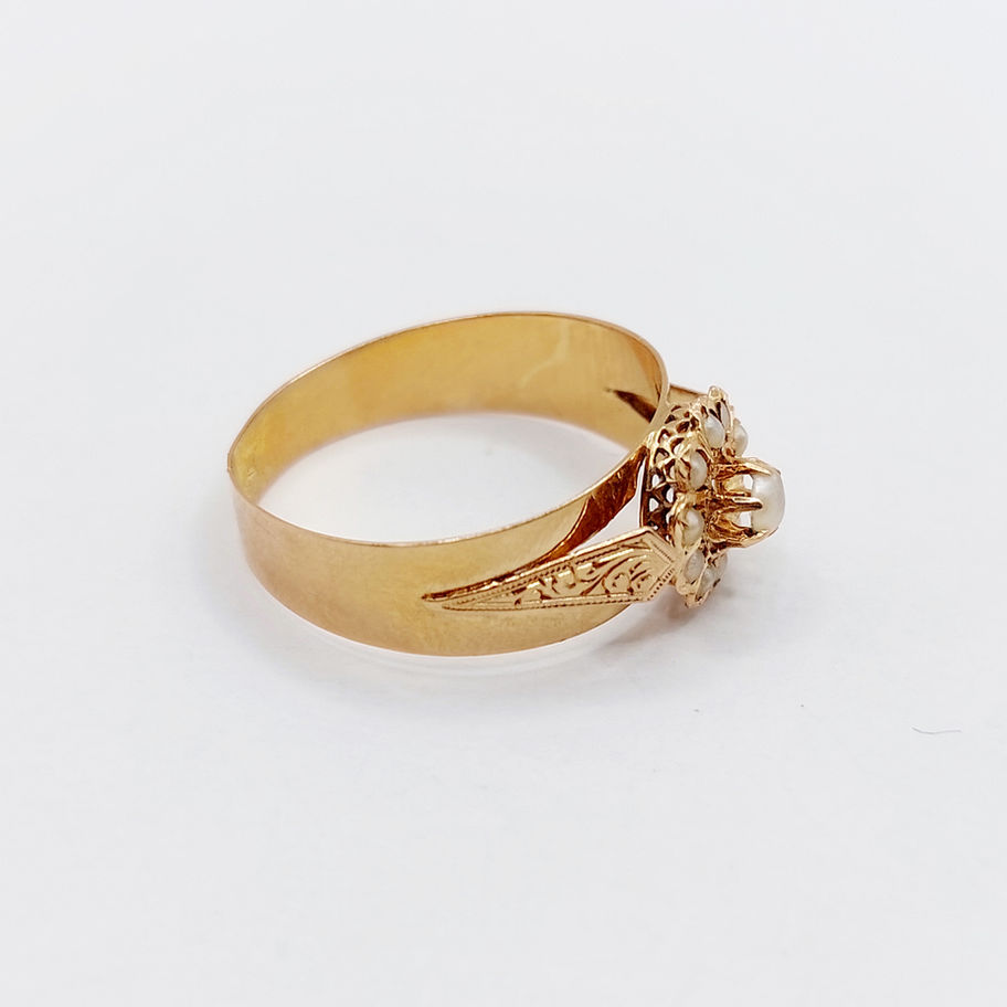 Bague marguerite antique or rose 18k ornée de perles dans une monture finement ciselée (circa 1900)