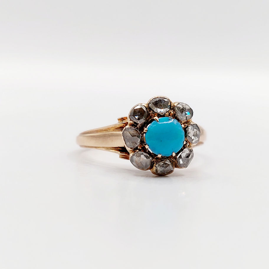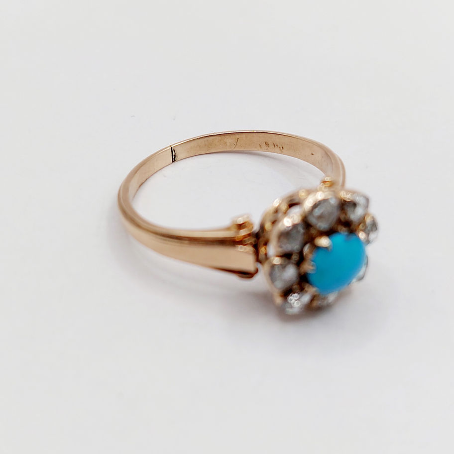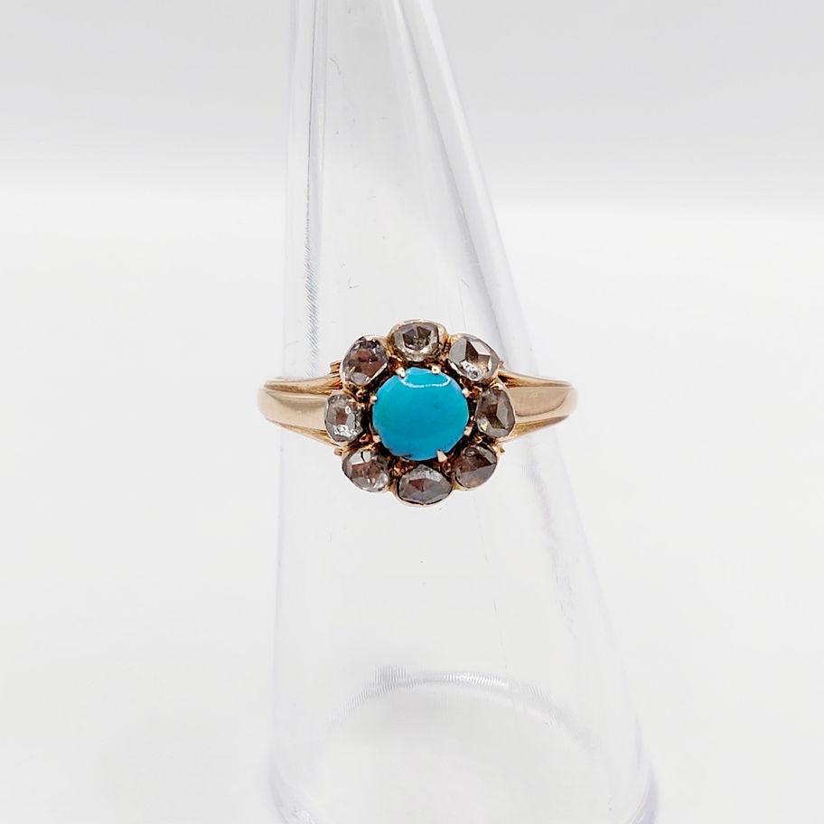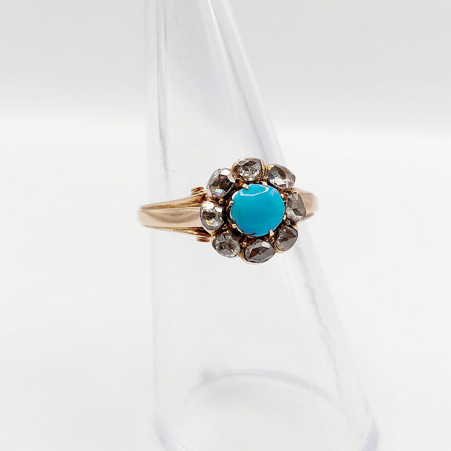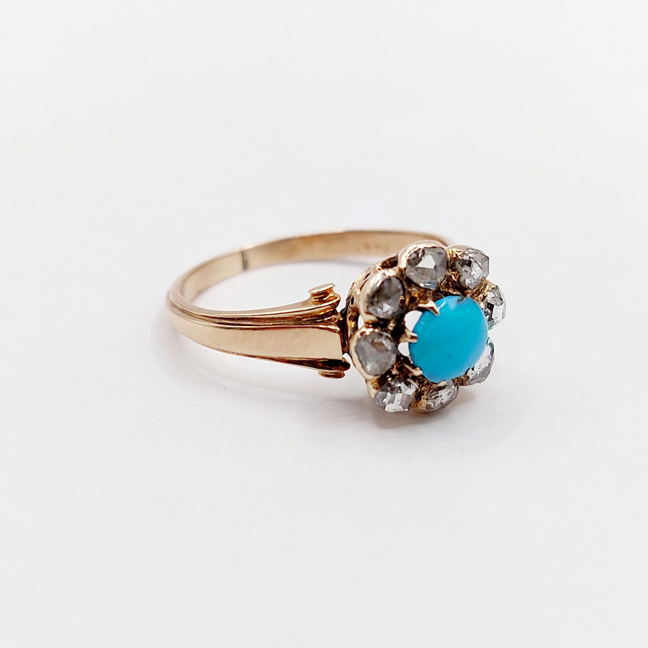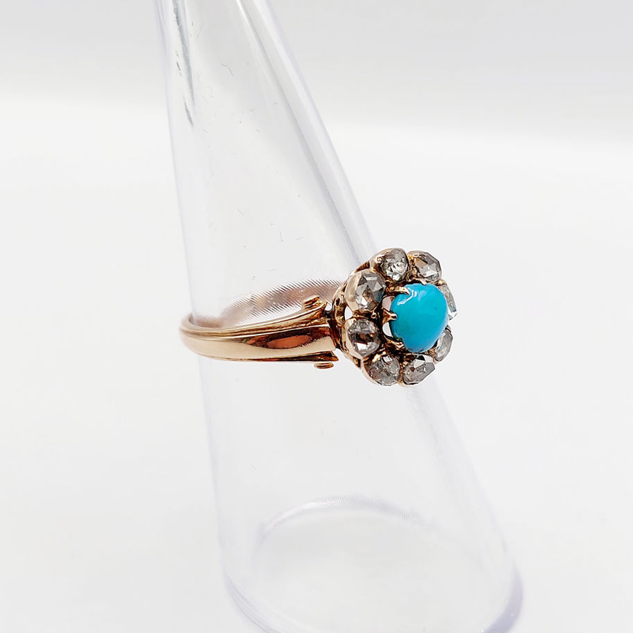 Bague marguerite victorienne or rose 10k turquoise et diamants (circa 1880)