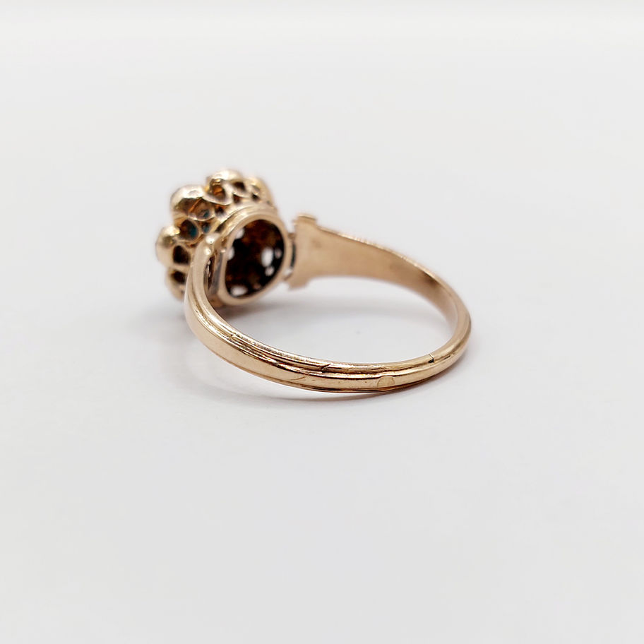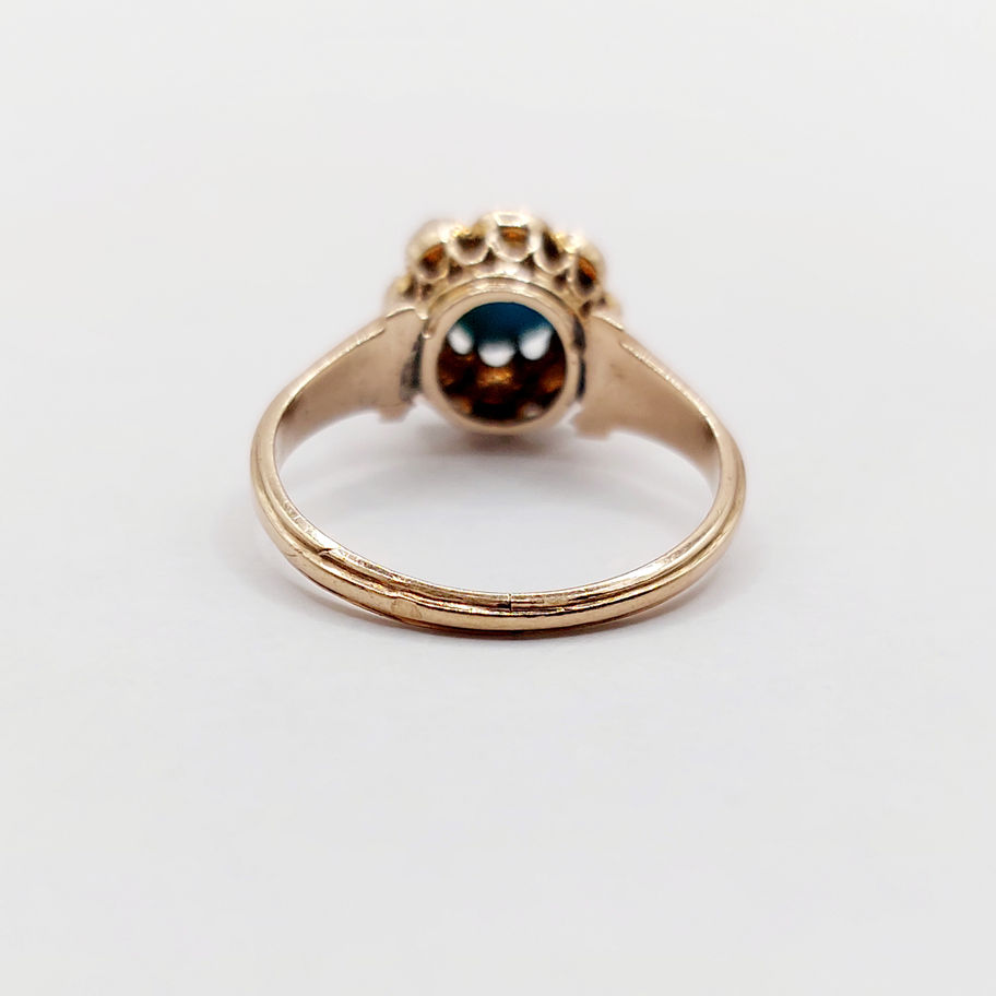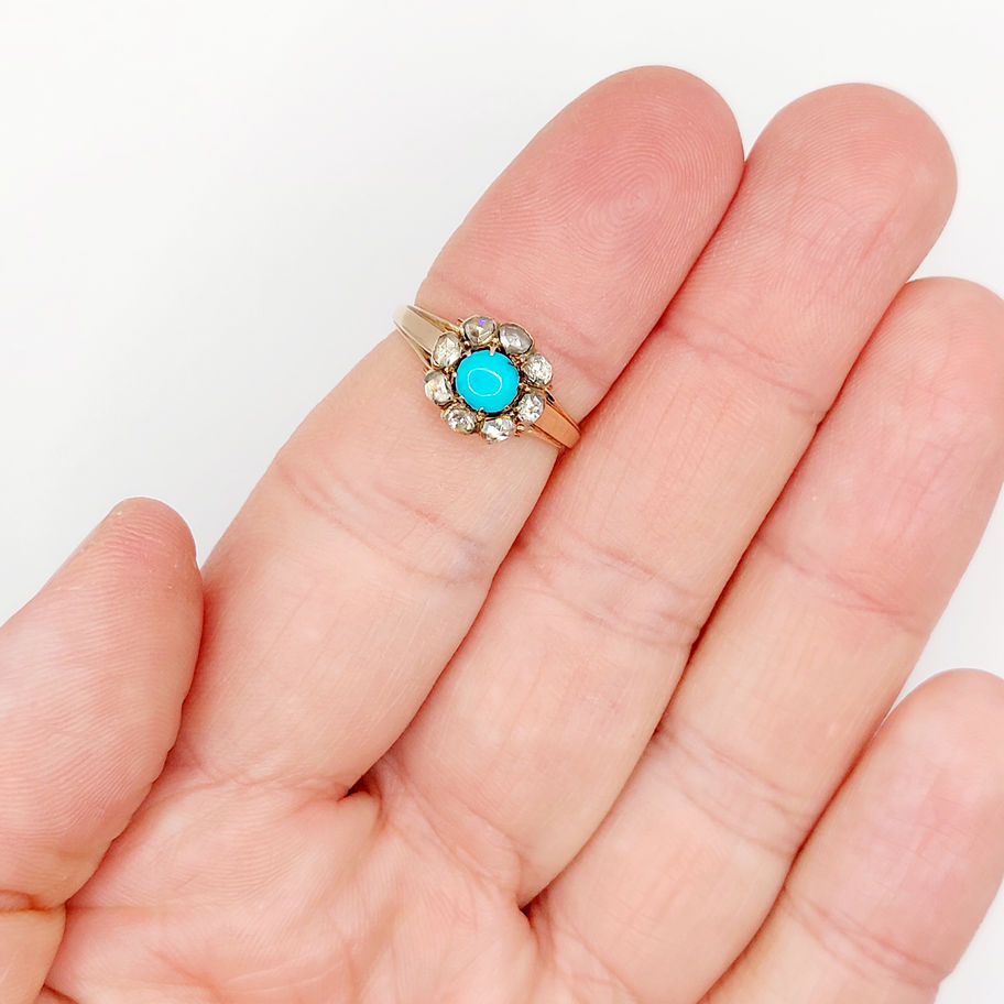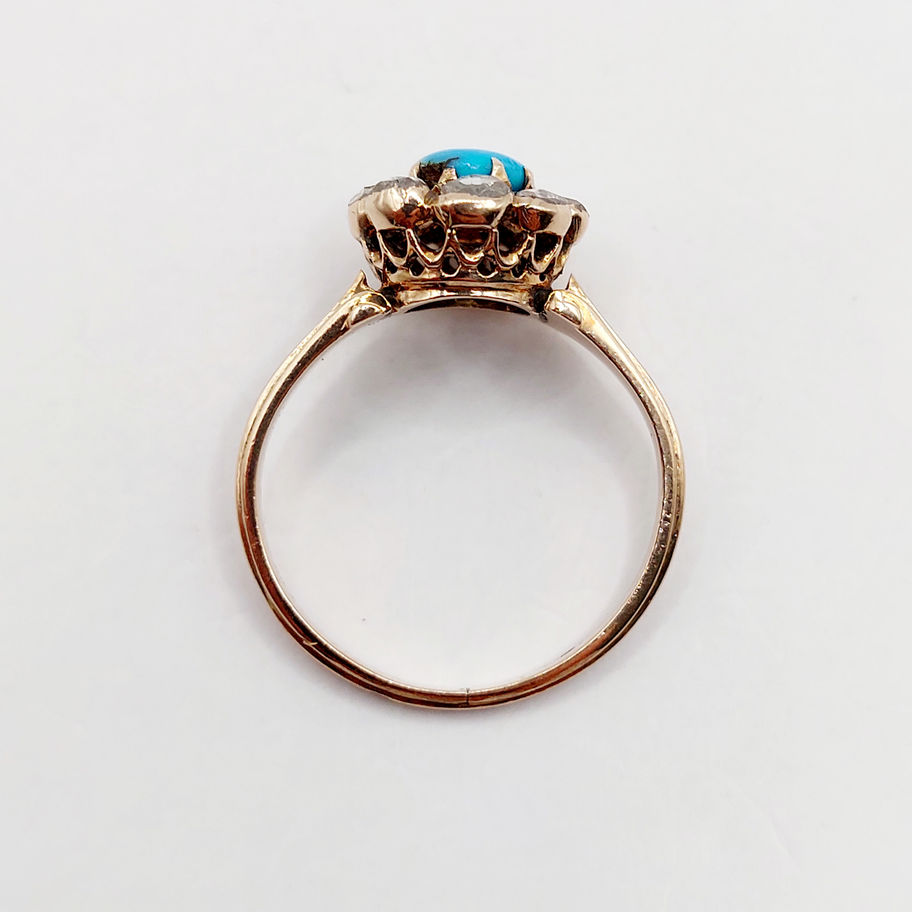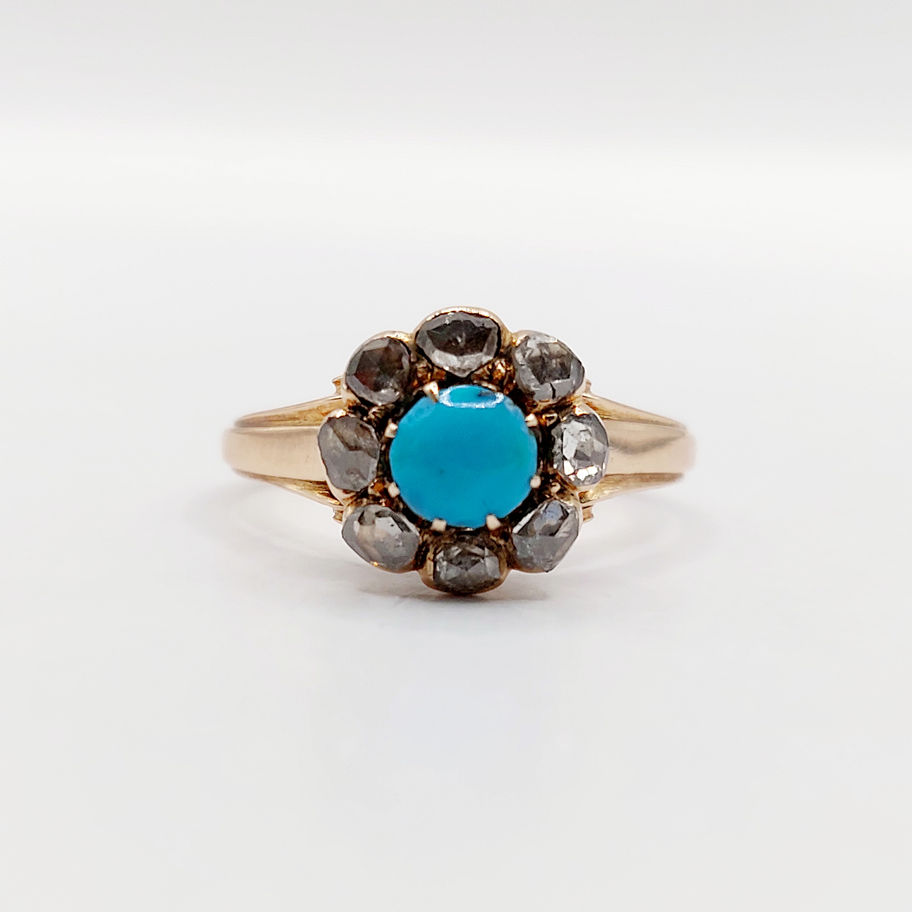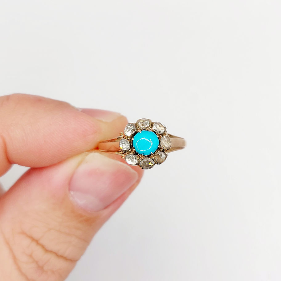 Bague marguerite victorienne or rose 10k turquoise et diamants (circa 1880)