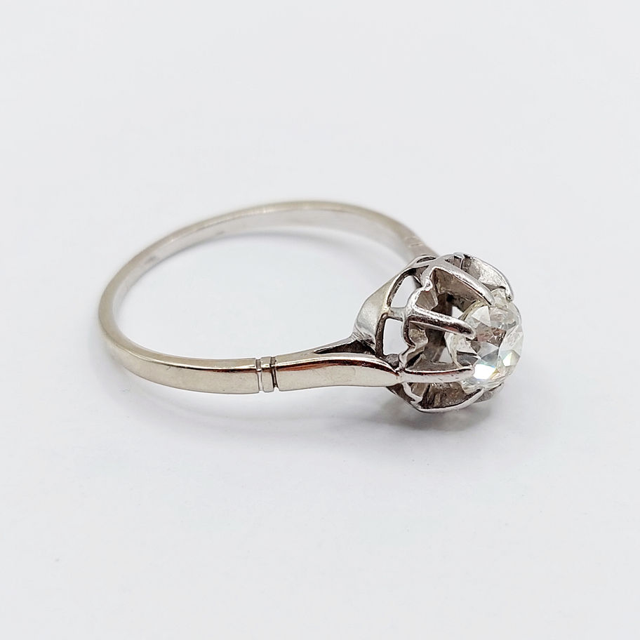 Bague solitaire art deco or blanc 18k diamant taille ancienne 0.80 carat (c 1920
