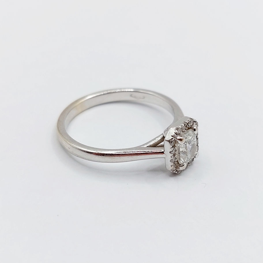 Bague solitaire or blanc 18k diamant taille radiant 0,50 carat + certificat