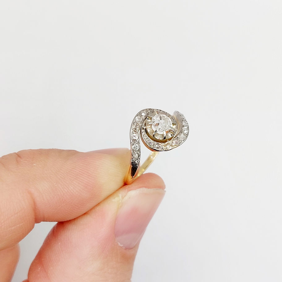 Bague tourbillon antique or 18k diamant taille ancienne 0,25 carats (circa 1900)