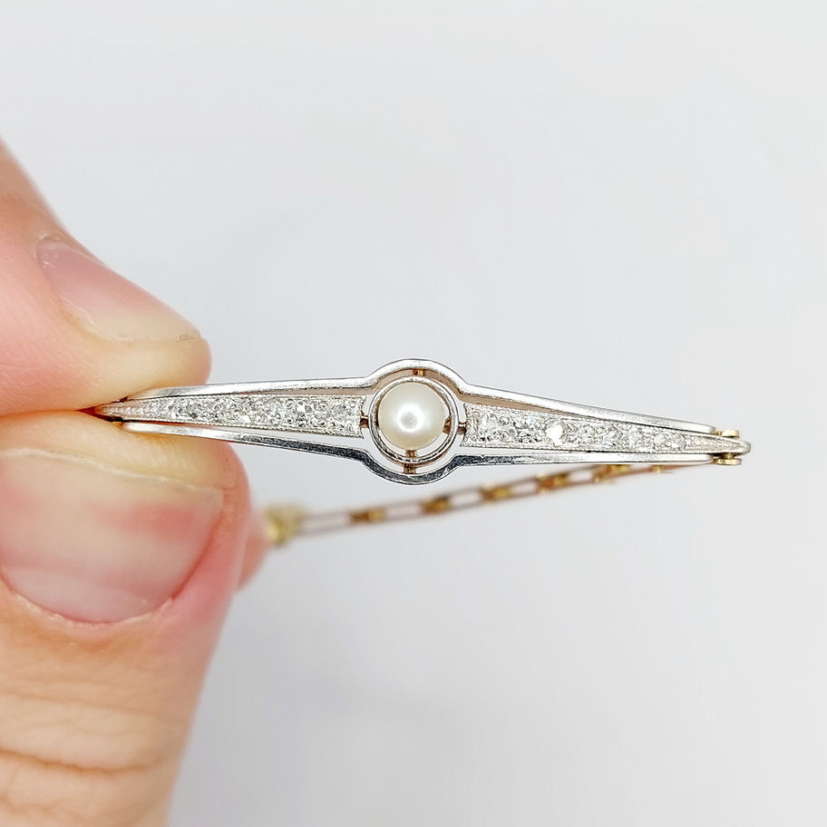 Bracelet Art deco or 18k et platine orné d'une perle entouré de diamants (circa 1920)