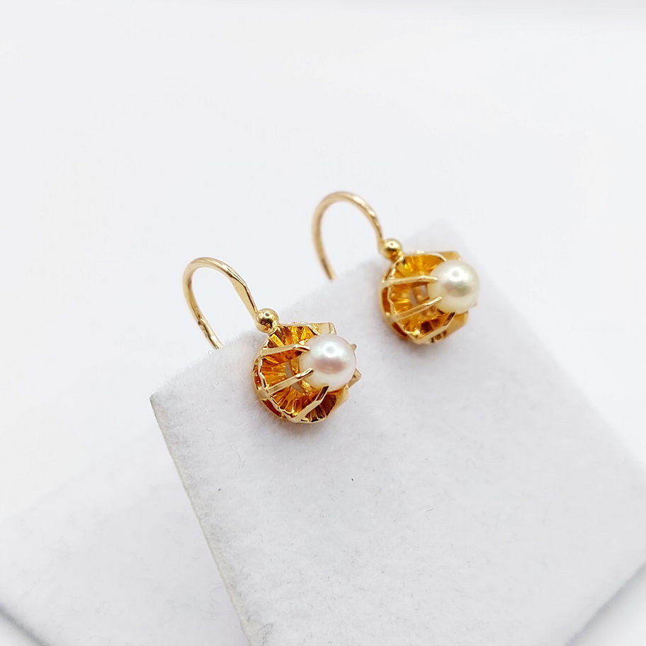 Dormeuses antique or rose 18k et perles (circa 1900)