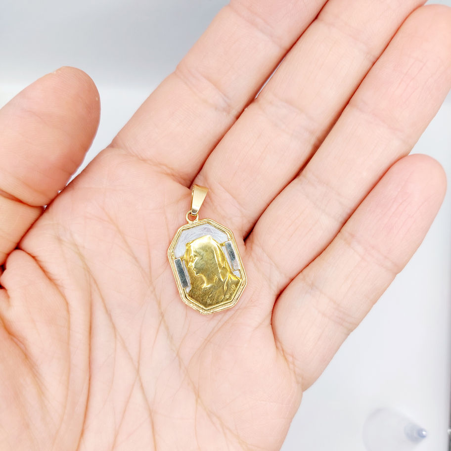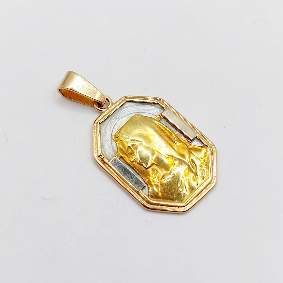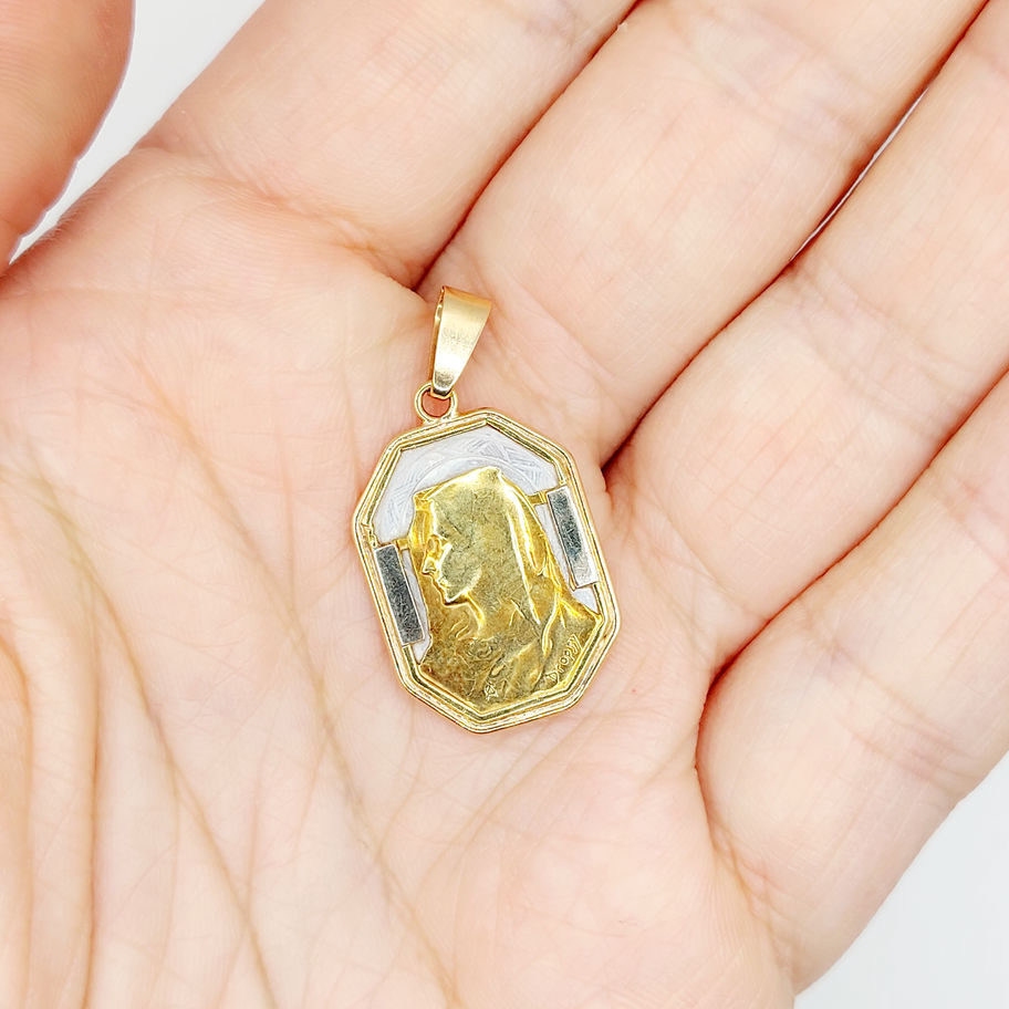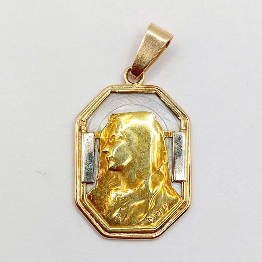 Médaille religieuse art deco or rose 18k nacre et Vierge Marie (c 1910) E Dropsy