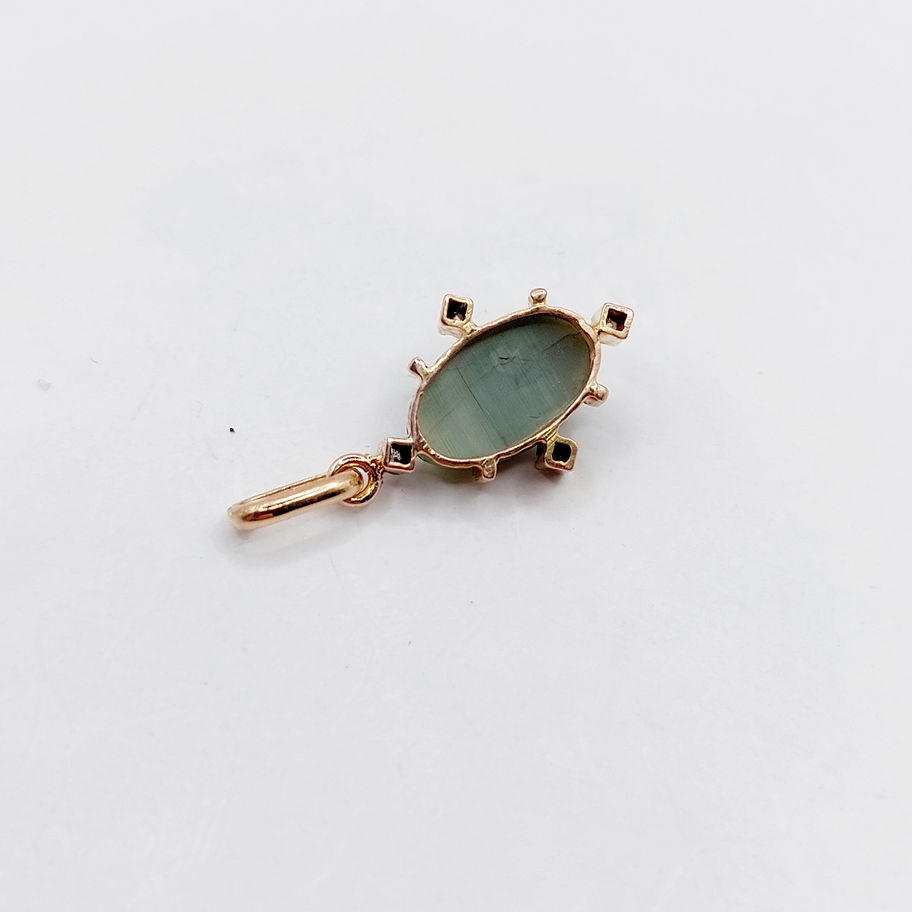 Pendentif antique or rose 18k agate œil de chat et diamants (circa 1900)