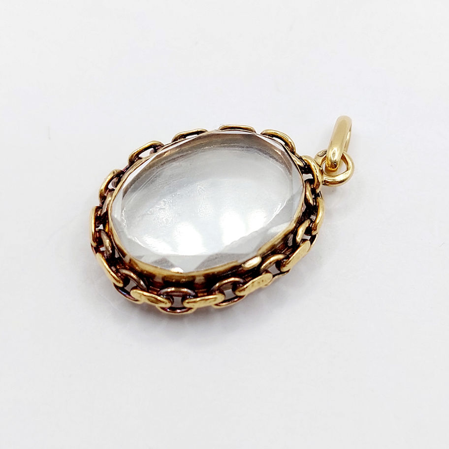 Pendentif porte photo, reliquaire antique or 18k en cristal de roche facettés (circa 1900)