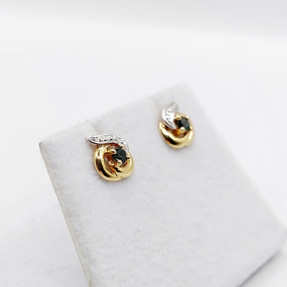 Puces d'oreilles vintage or 18k ornées de saphirs, style art nouveau