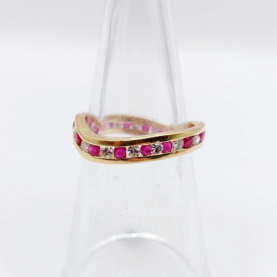 Alliance américaine or 18k ornée de diamants et de rubis années art deco