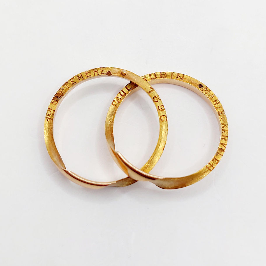 RARE Alliance jumelées victorienne or rose 18k finement travaillée (circa 1896) antique