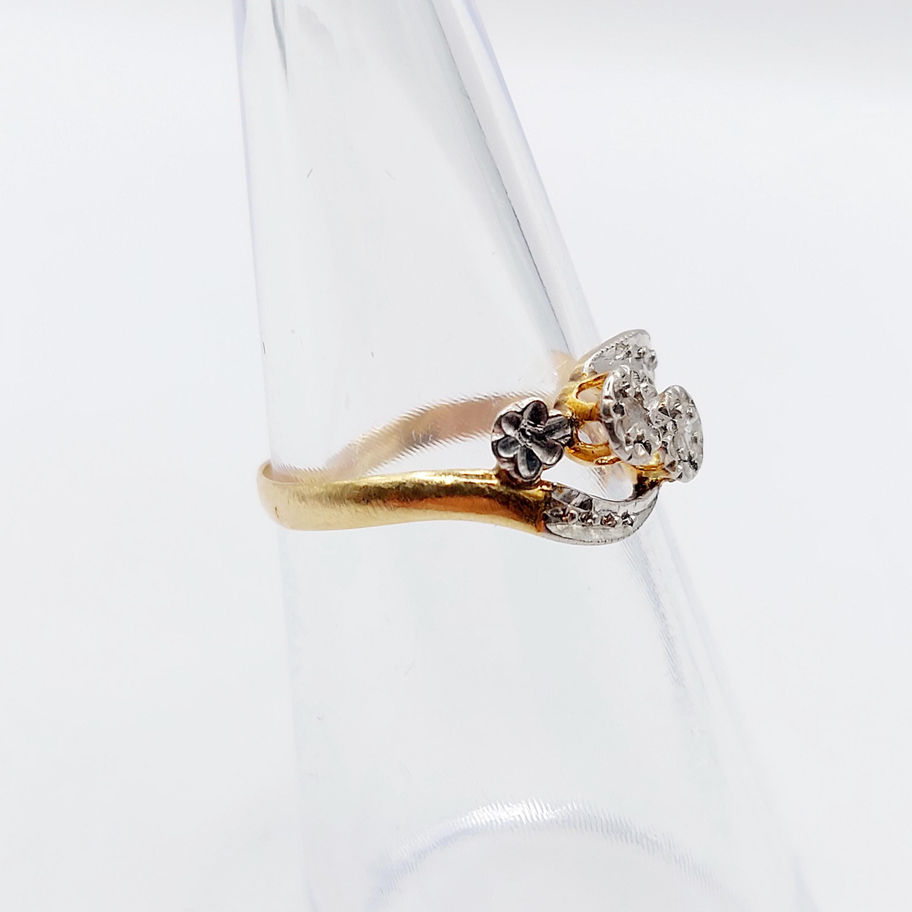 Bague antique or 18k ornée de diamants taillés en roses dans une monture à enroulement (circa 1900) victorienne