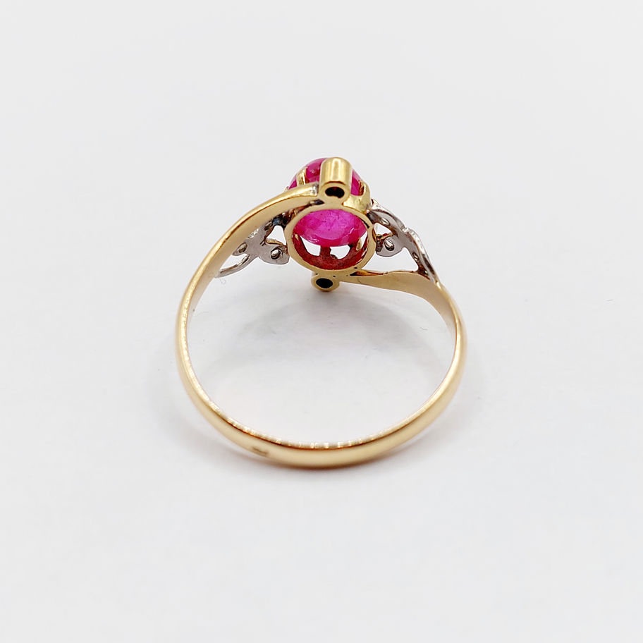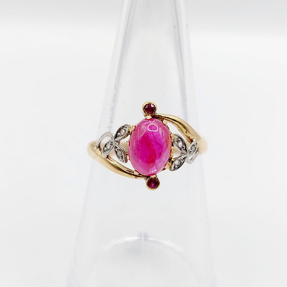 Bague art nouveau or 18k cabochon de rubis et diamant taille roses (circa 1910)