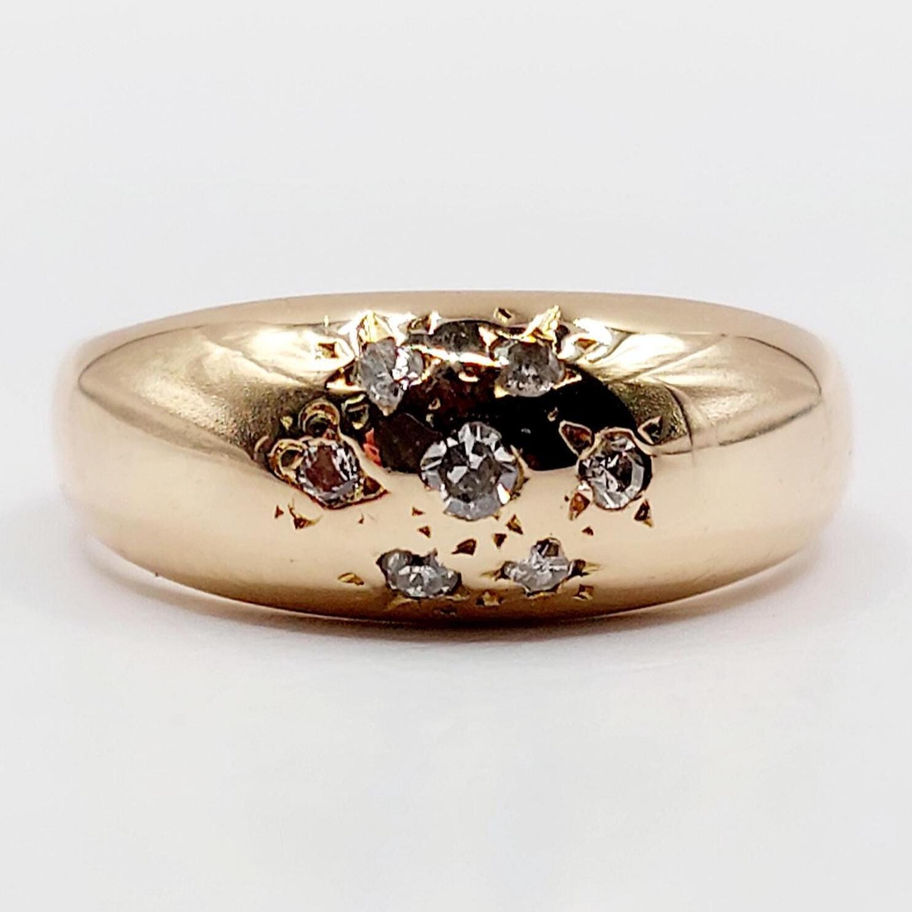 Bague bombé dôme or rose 18k ornée de diamants en serti étoilé (circa 1940)
