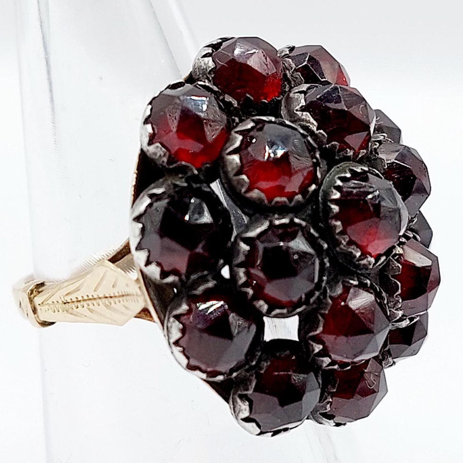 Bague dôme antique or 14k et argent ornée de cabochon de grenats années 1880