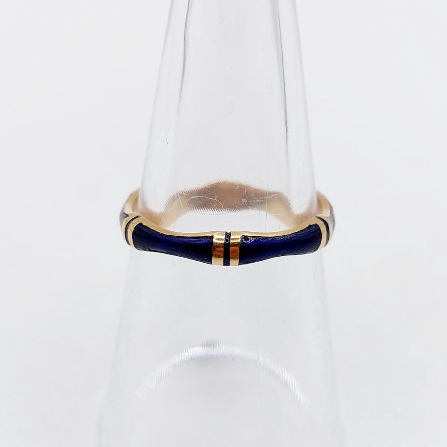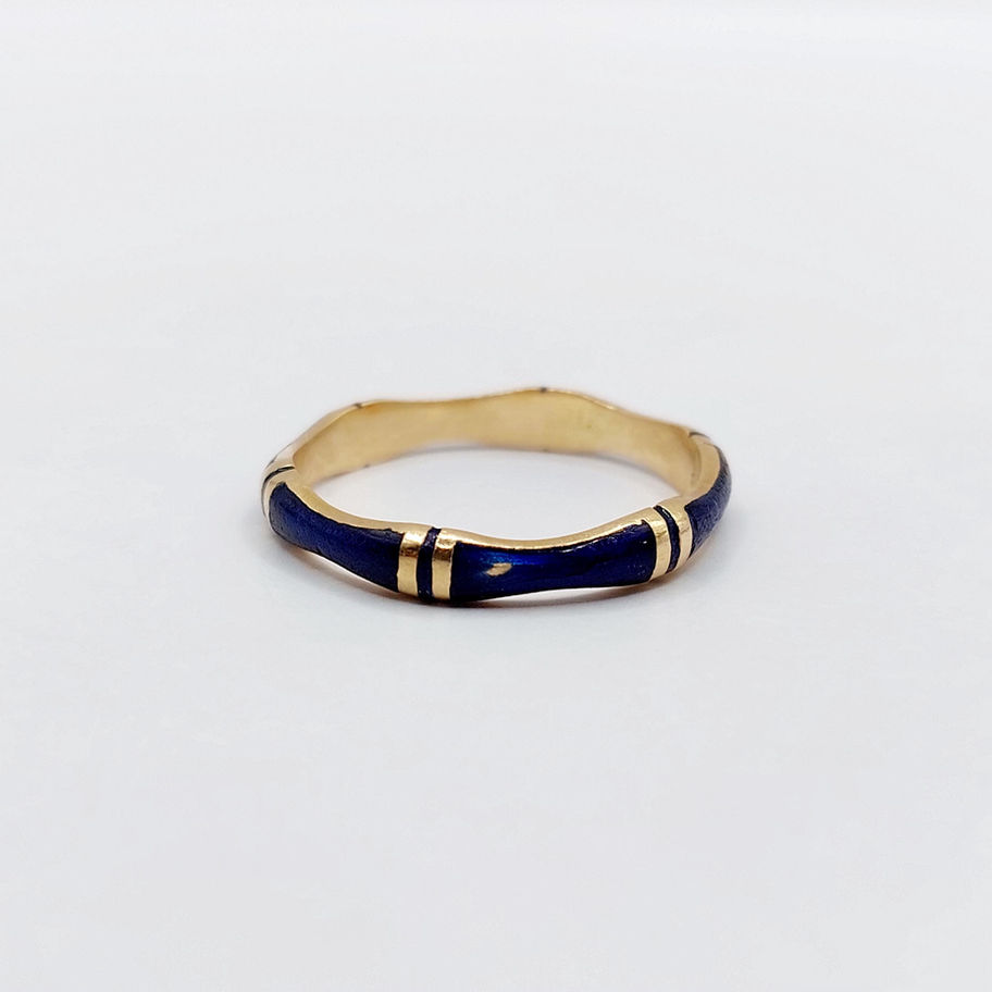 Bague jonc Alliance vintage or 18k style bambou décorée d'émail bleu