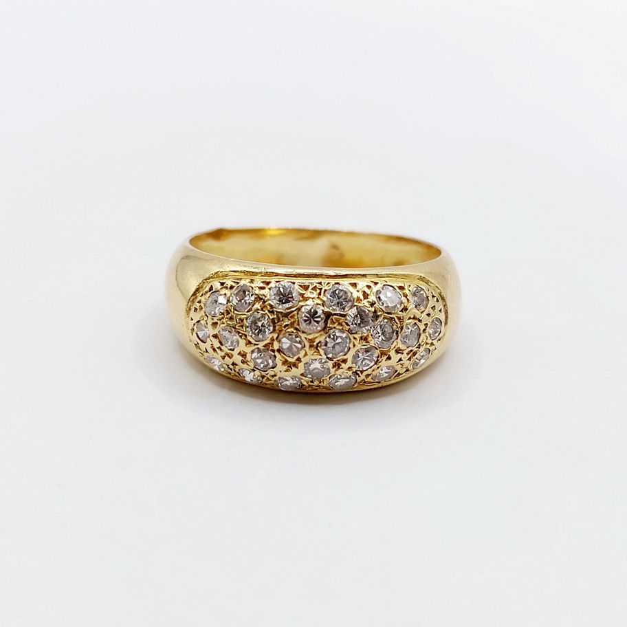 Bague jonc bombée or 18k ornée d'un pavé de 0,65 carats de diamants taille brillant (circa 1970)