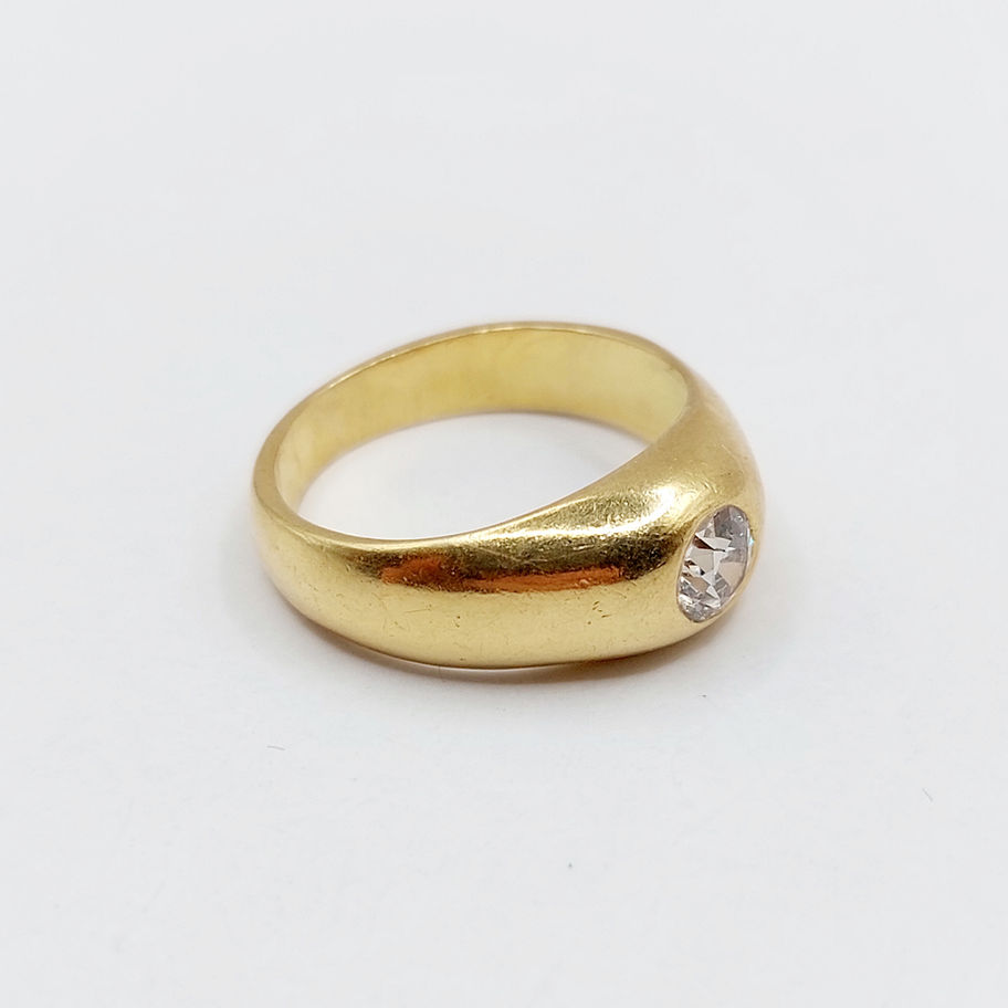 Bague jonc dôme or 18k diamant taille ancienne 0,40 carats