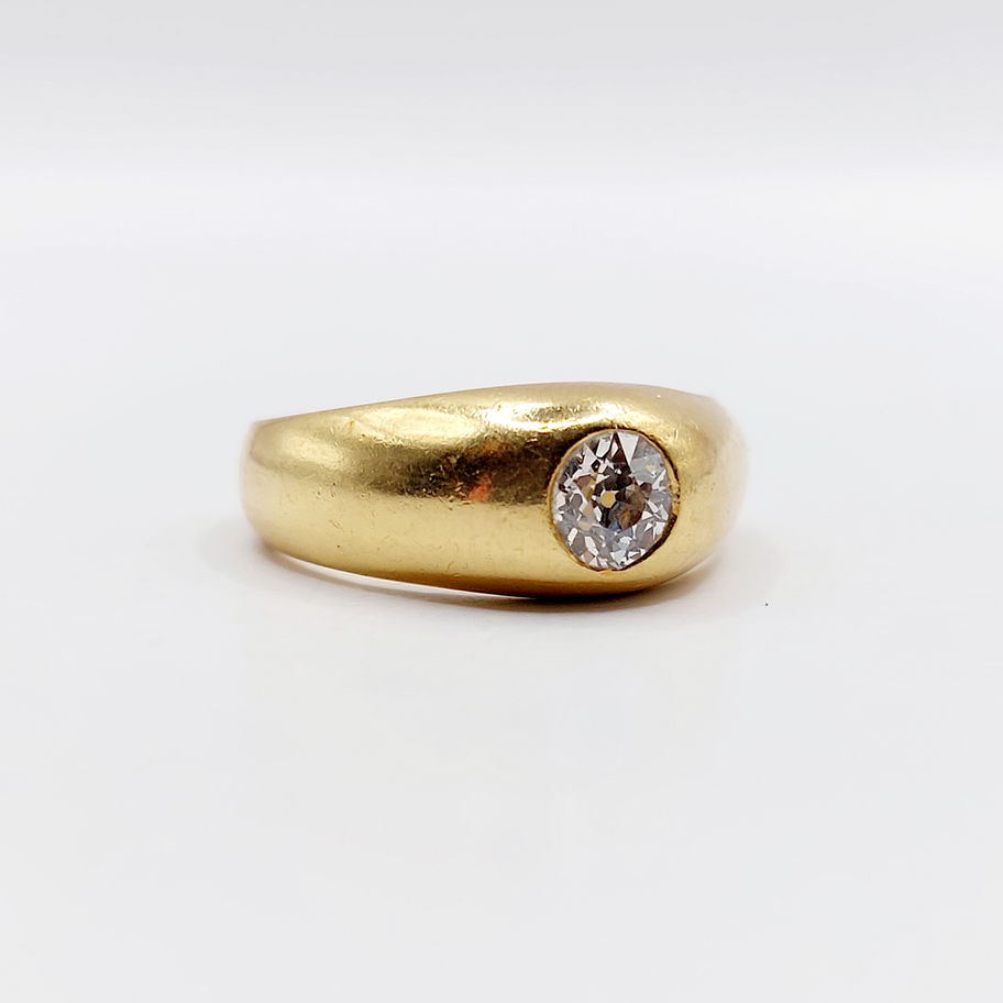 Bague jonc dôme or 18k ornée d'un diamant taille ancienne de 0,40 carats (circa 1940) gipsy
