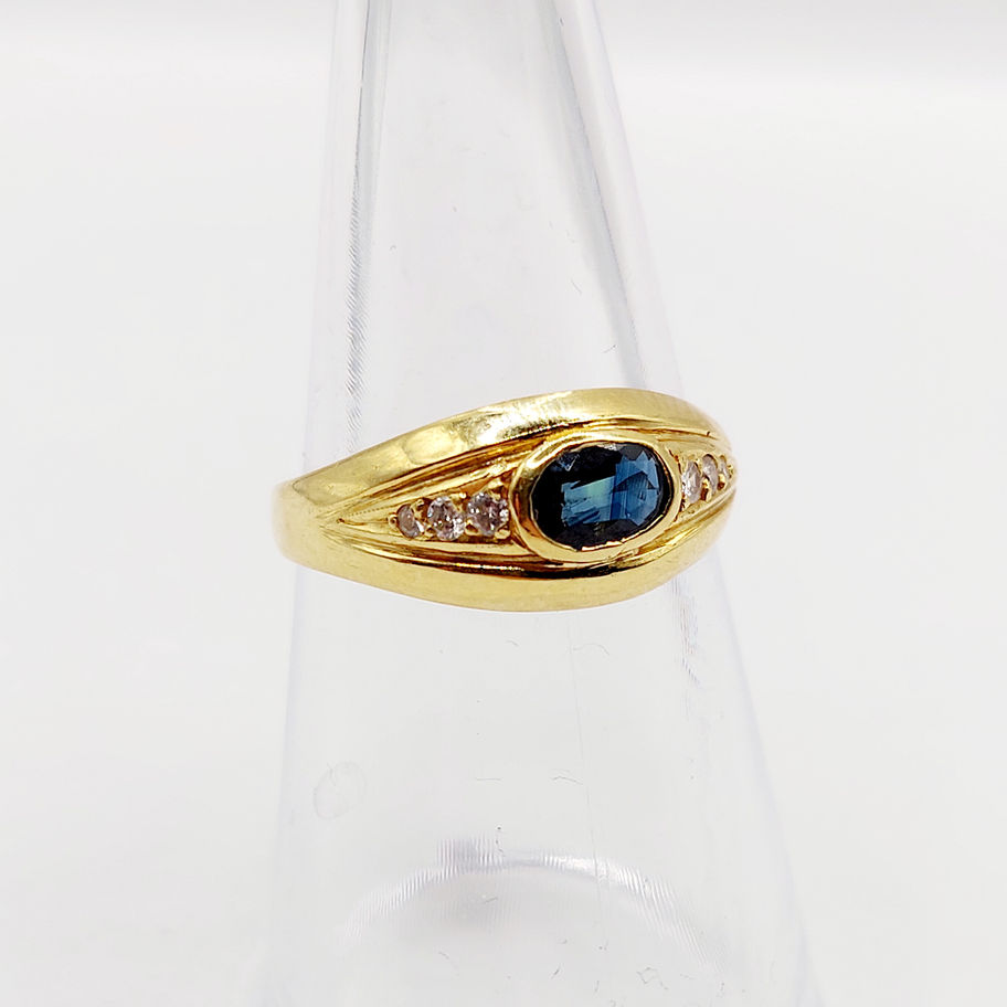 Bague jonc vintage or 18k ornée d'un saphir de 0,32 carats épaulé de diamants, art deco