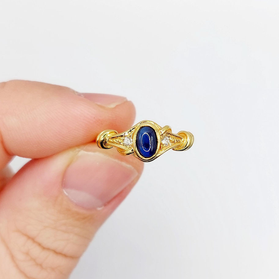 Bague jonc vintage or 18k saphir synthétique 0.52 carats diamants années 1980