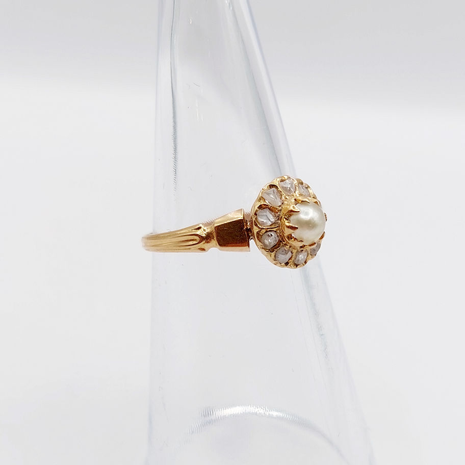 Bague marguerite antique or rose 18k perle et diamants taille roses (circa 1900)