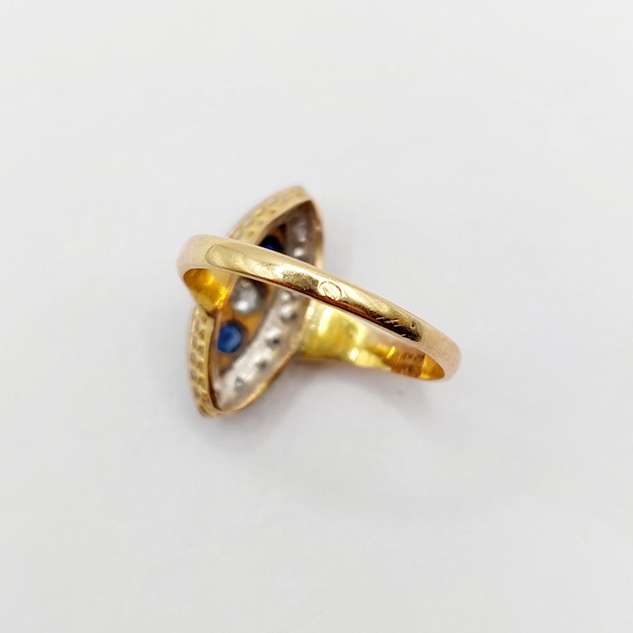 Bague marquise antique or 18k et platine, diamant ancien, saphirs, années 1900