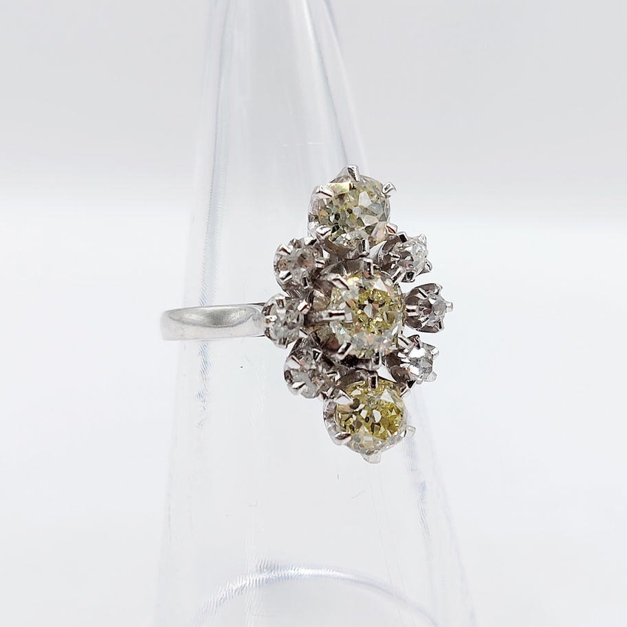 Bague marquise art deco or blanc 18k et 1,50 carats diamants taille anciennes