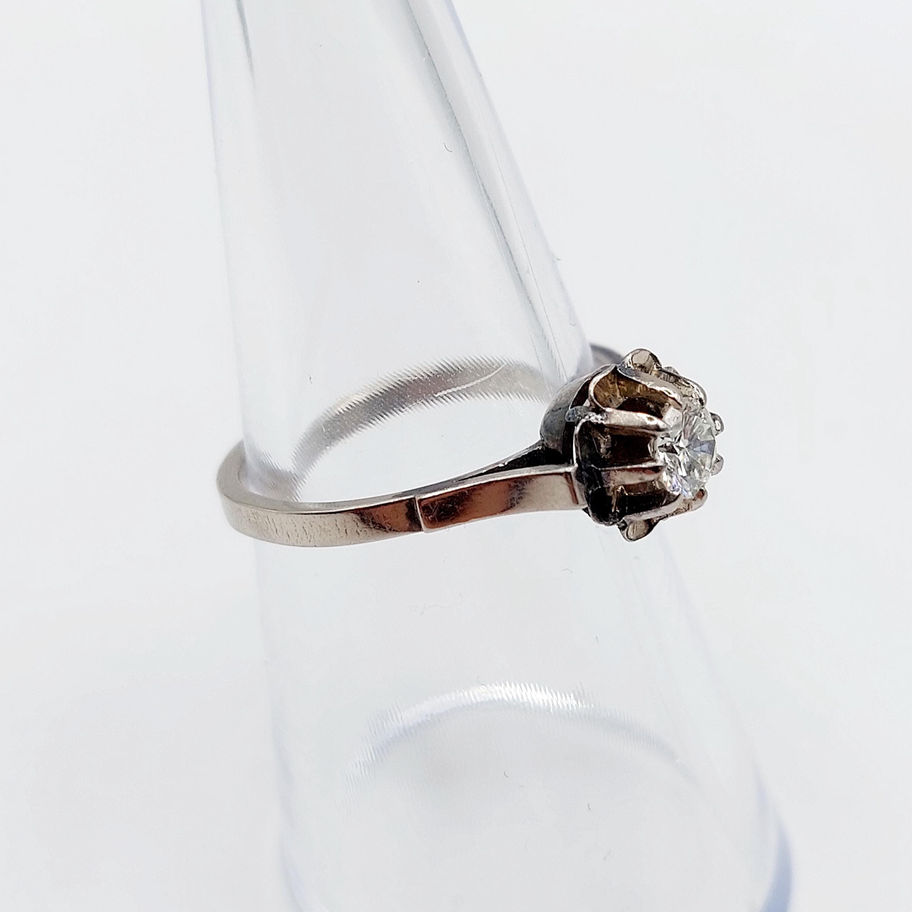 Bague solitaire art deco or blanc 18k ornée d'un diamant taille brillant de 0,25 carats en serti griffes (circa 1930)