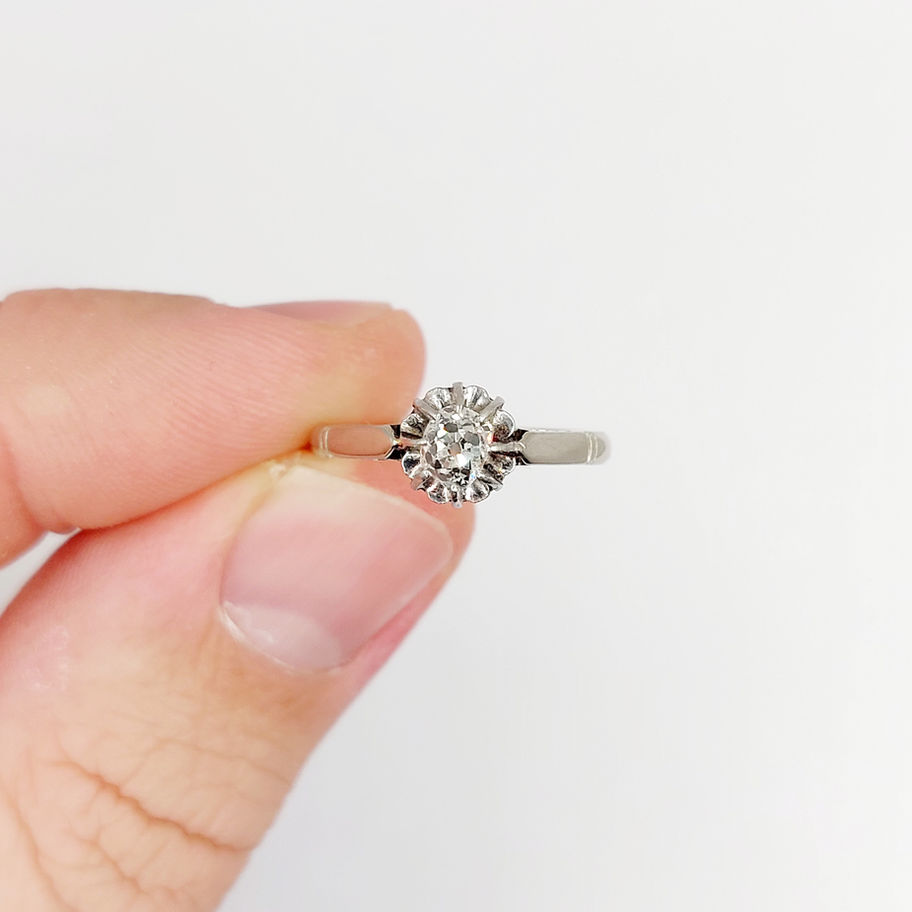 Bague solitaire art deco or blanc 18k diamant taille ancienne 0.35 carat (1920)