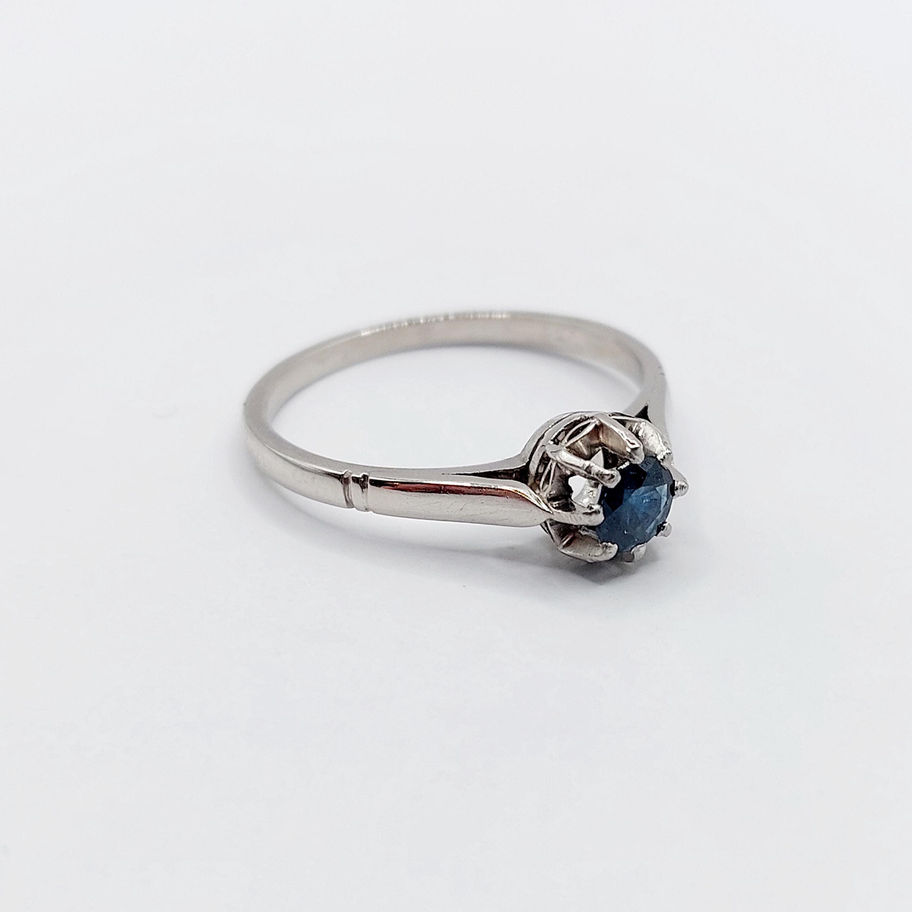 Bague solitaire art deco or blanc 18k saphir naturel années 1950