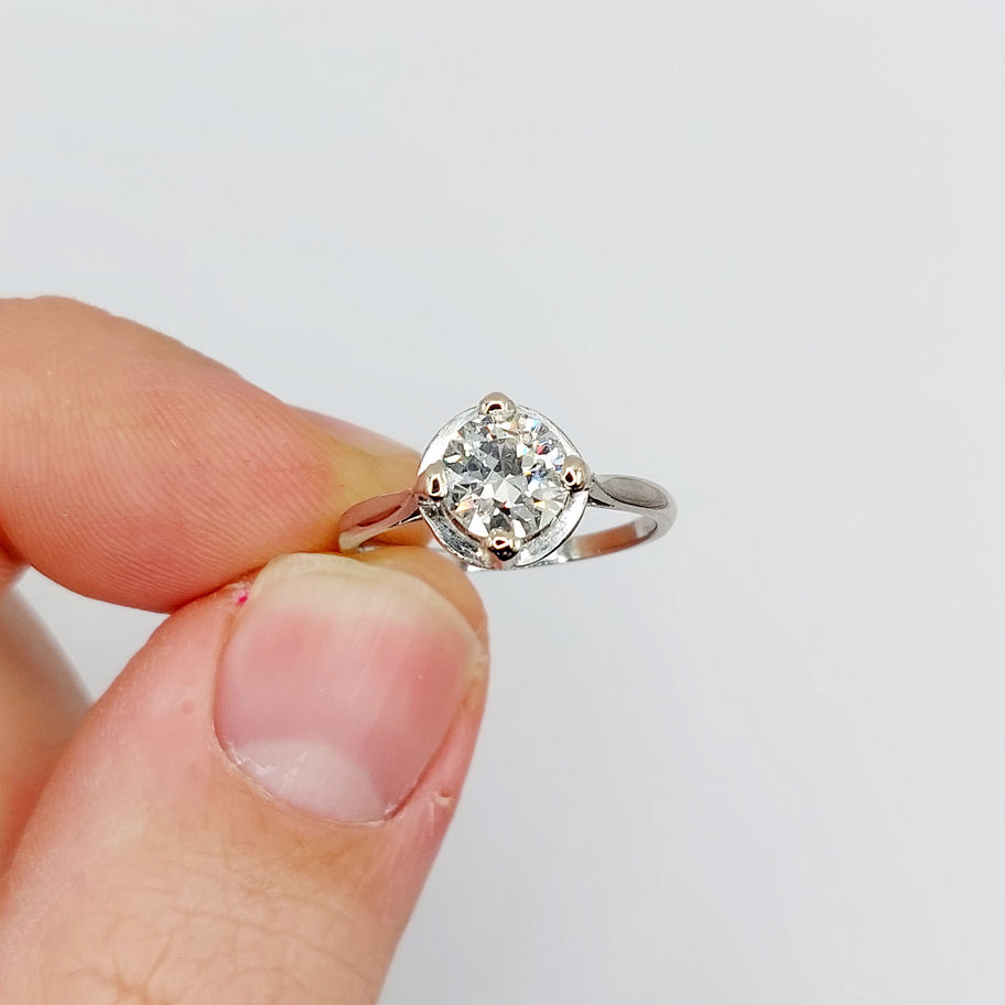 Bague solitaire art deco Platine diamant 1,11 carat taille ancienne, certif LFG