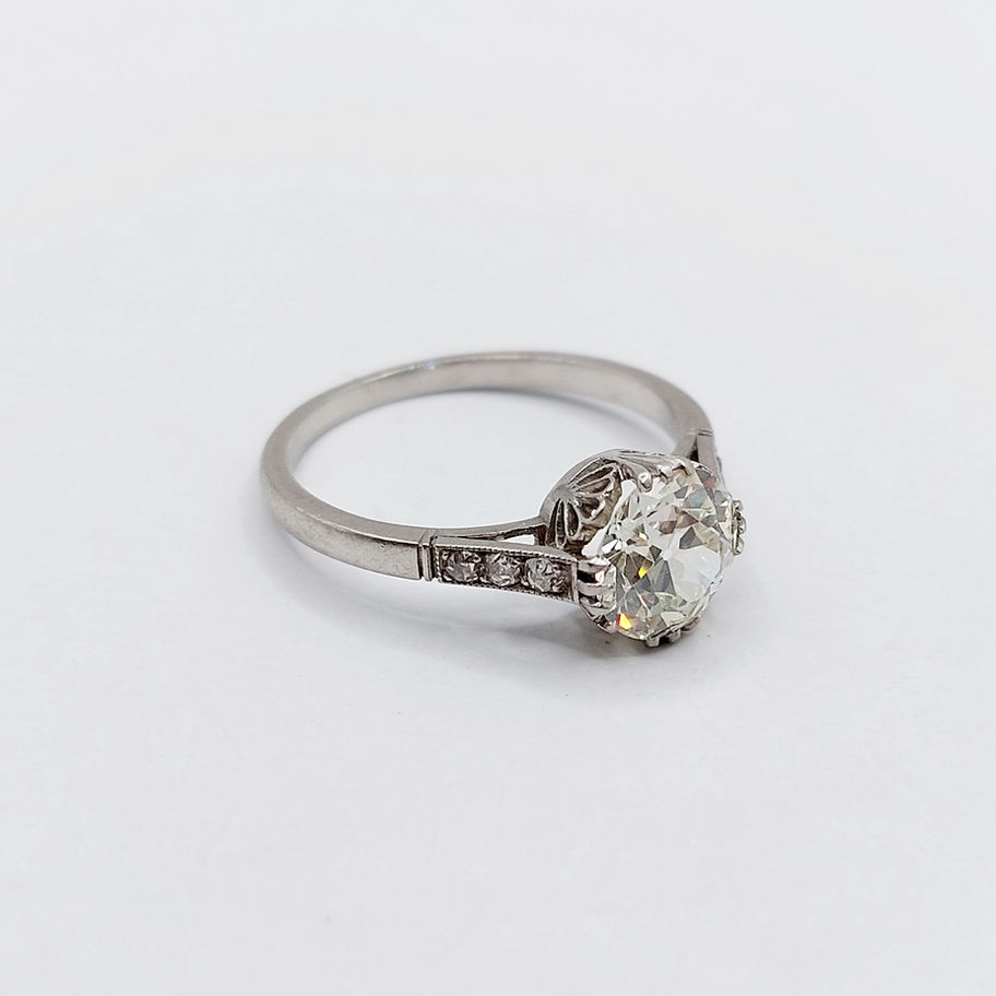 Bague solitaire art deco Platine diamant taille ancienne 1,40 carat (circa 1920)