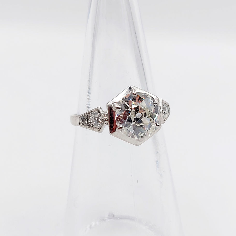 Bague solitaire art deco Platine diamant taille ancienne 1,70 carat (circa 1920)