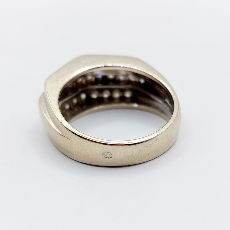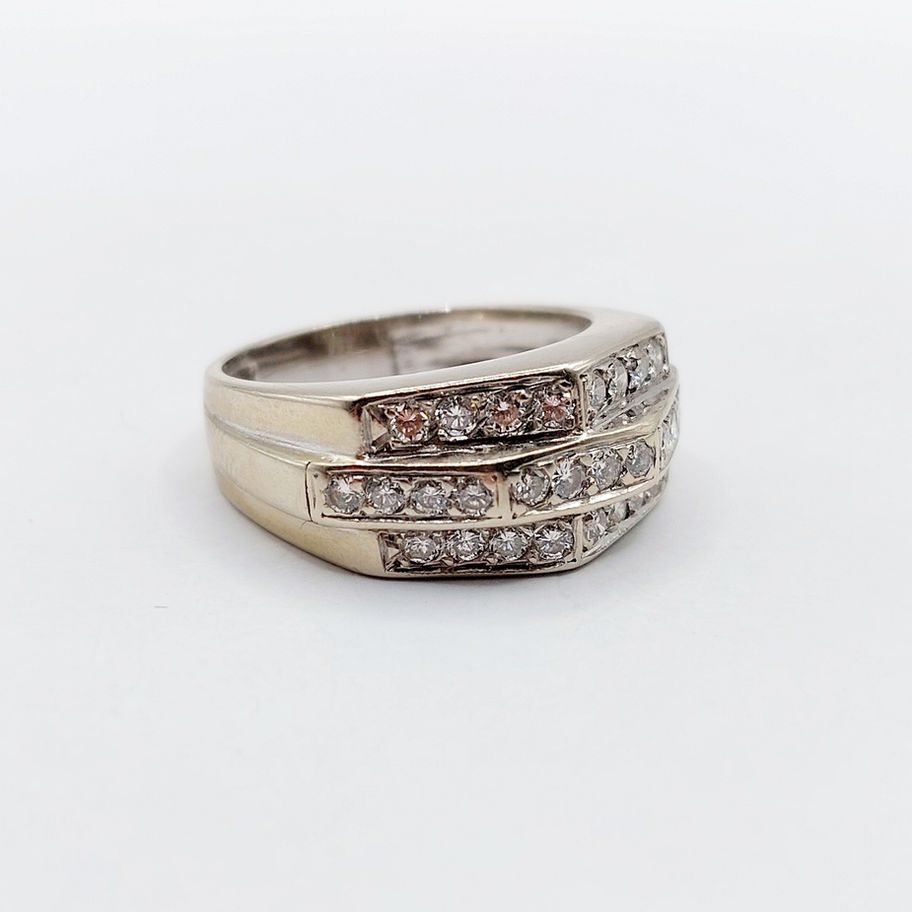 Bague tank art deco or blanc 18k ornée de 0,84 carats de diamants