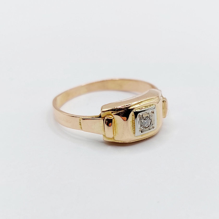 Bague tank art deco or rose 18k ornée d'un petit diamant taille brillant dans une monture géométrique (circa 1950)