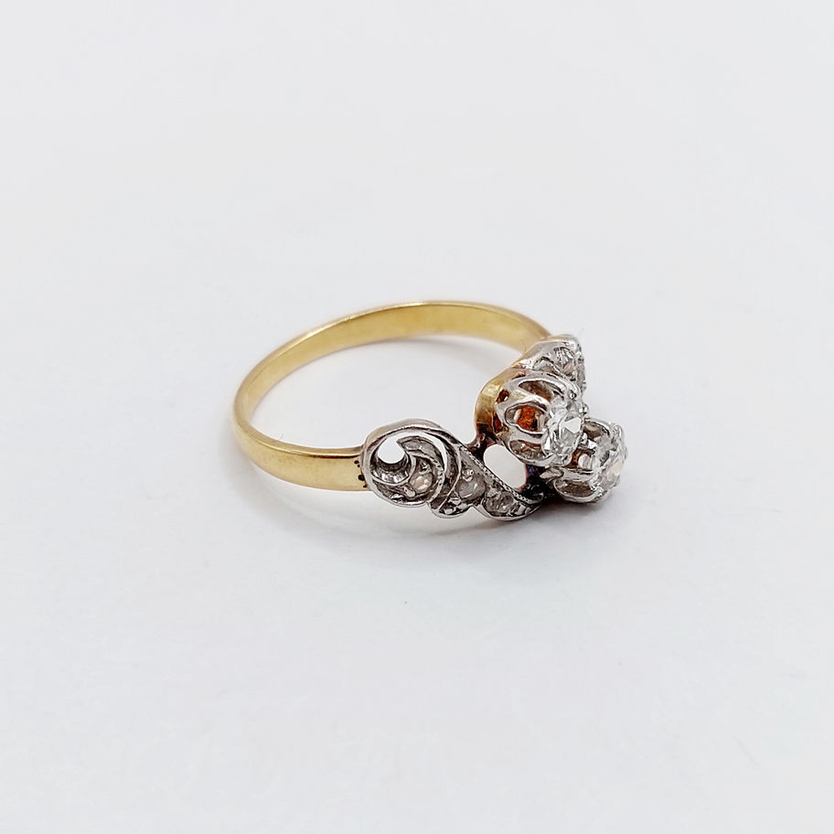 Bague toi et moi antique or 18k diamants taille ancienne (circa 1900)