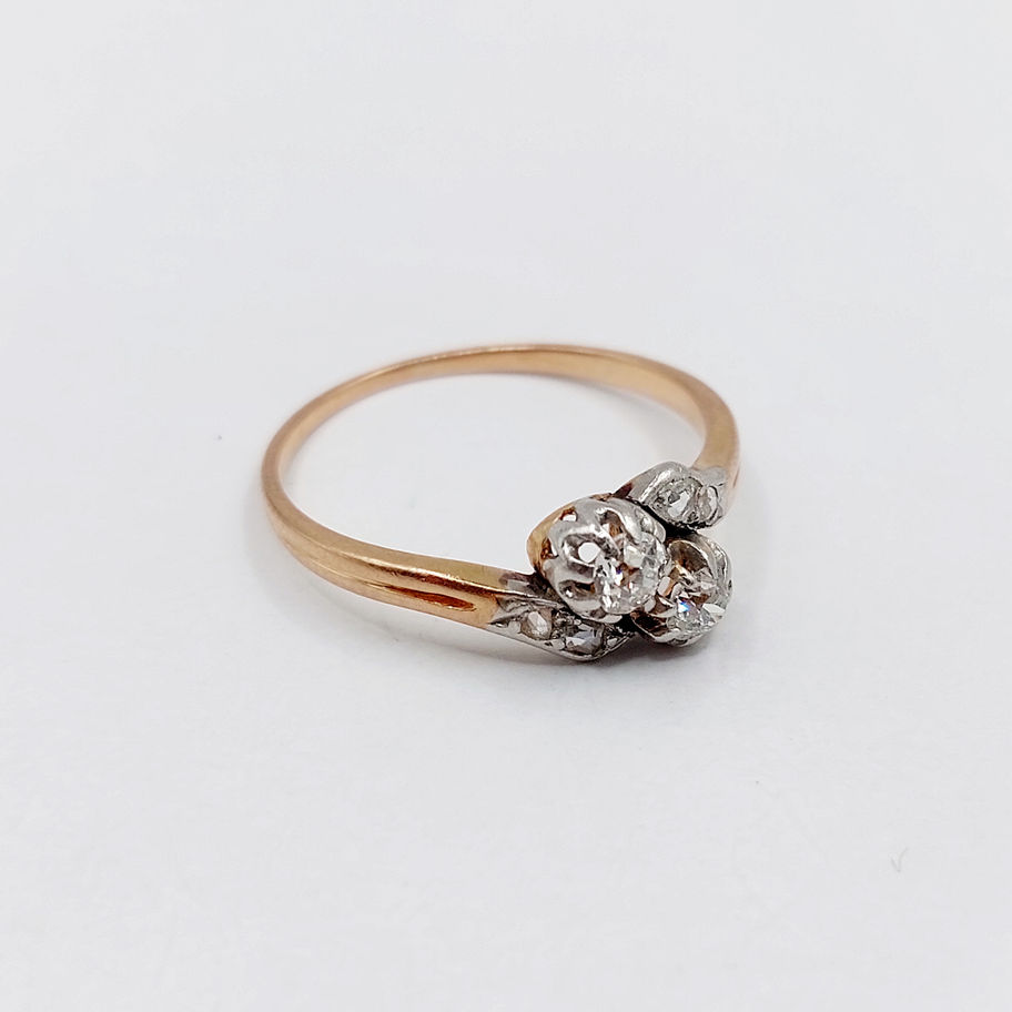 Bague toi et moi antique or rose 18k diamants taille ancienne (circa 1900)