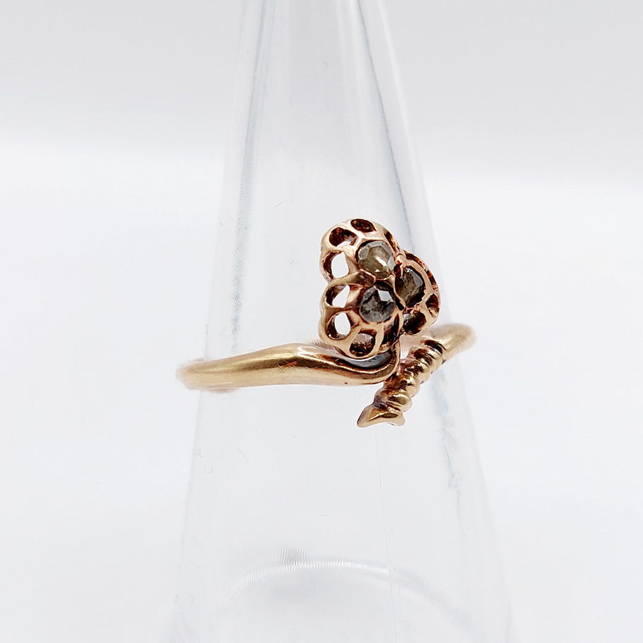 Bague victorienne or rose 18k trèfle diamants taillés en roses années 1900