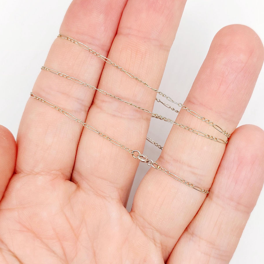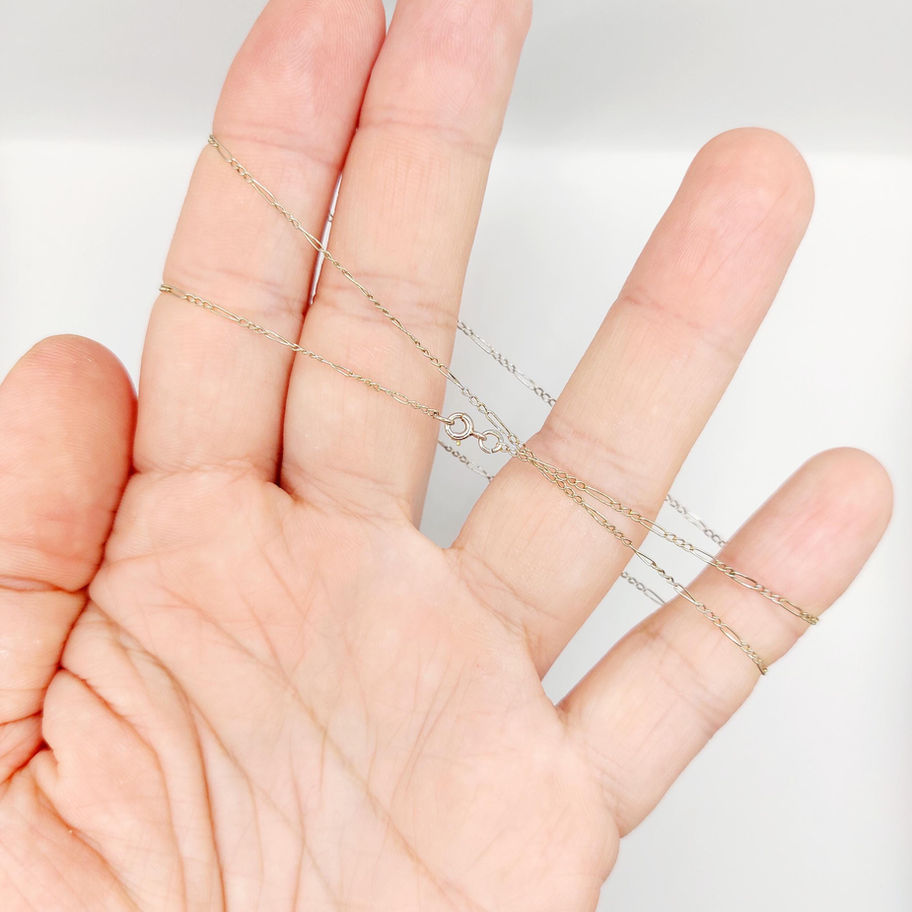 Chaine fine vintage or blanc 18k mailles gourmette alternées 45 cm