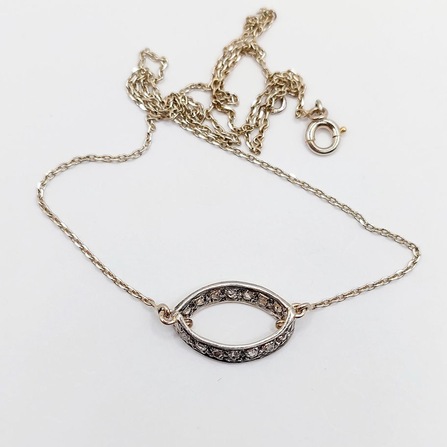 Collier antique or blanc 18k et argent orné d'un pendentif serti de diamants taillés en roses (circa 1920)