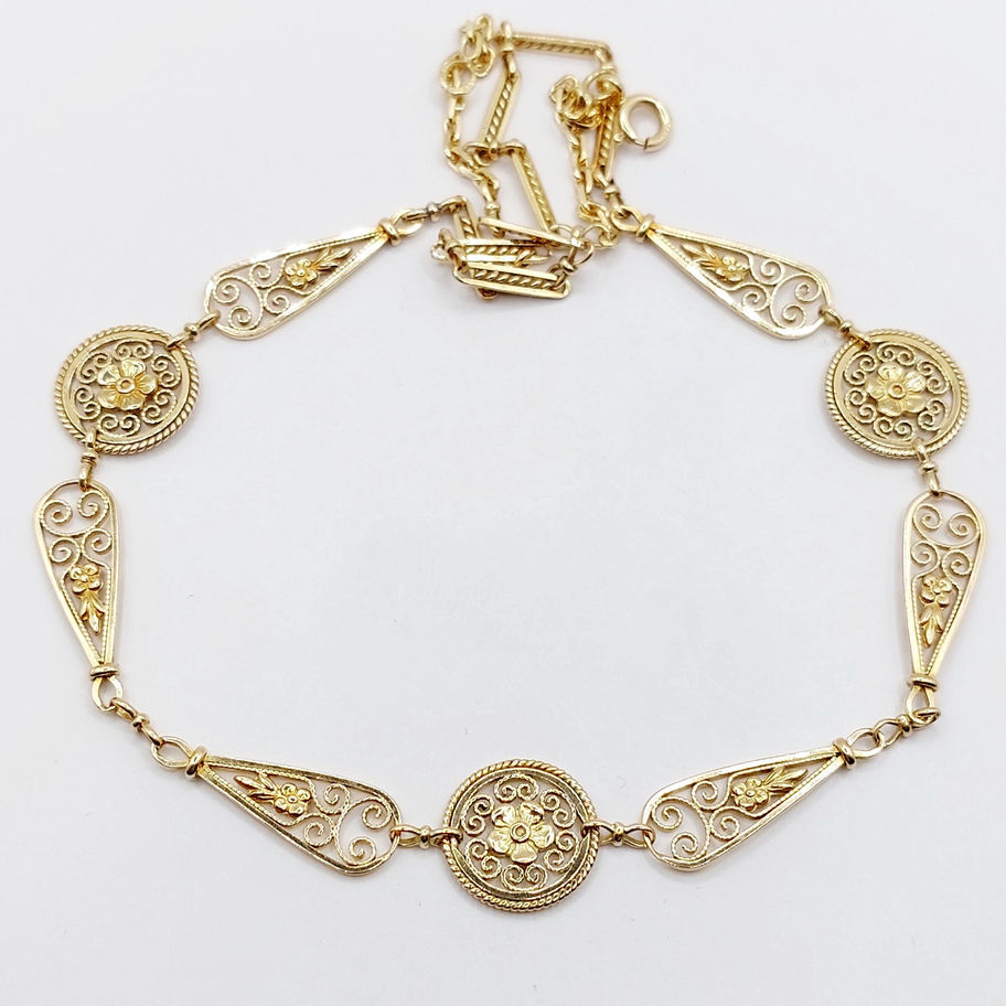 Collier art nouveau or 18k motifs filigranés fleuris années 1910 antique