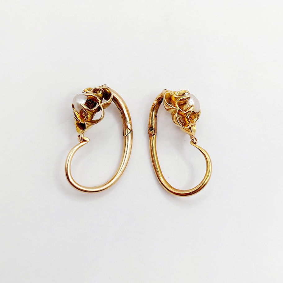 Dormeuses antique or 18k formant une fleur ornée d'une perle (circa 1900)