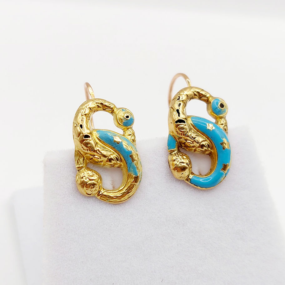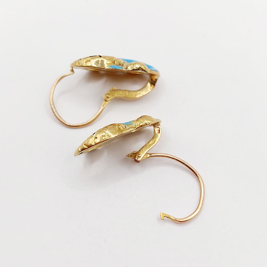 Dormeuses victorienne or 18k infini et émail bleu (circa 1870)